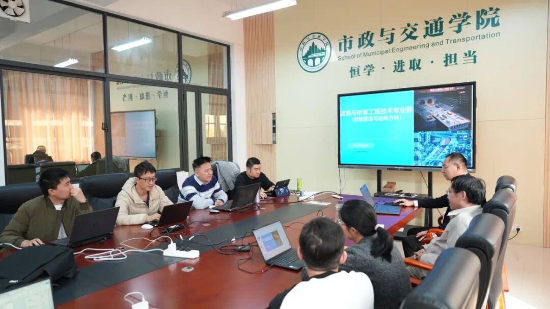市政与交通学院12名涵盖教研室主任、专业带头人与骨干教师的教职工,全员投入办学能力评价、高水平专业群申报与验收、学校二聘审核四项核心工作。