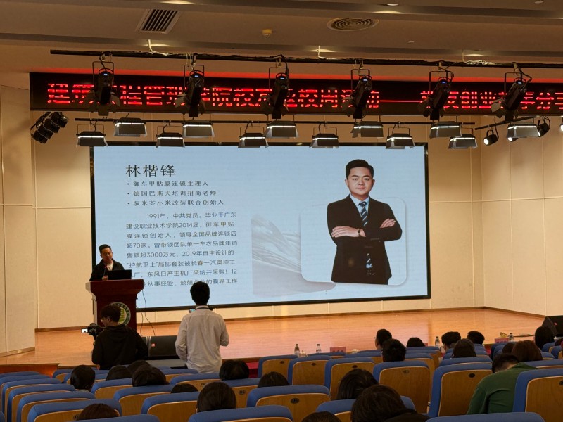 林楷锋分享了他从校内初次创业,到入职行业头部企业积累经验,再到联合创办企业并实现全国连锁发展的历程。邵振武讲述了自身从装饰工程领域跨入能源领域的转型经历,强调在变局中需深耕专业,同时拓宽视野、洞察趋势。同学们就创业准备、行业选择、学业规划等方面踊跃提问,现场气氛热烈,两位校友结合亲身经历一一回应解答。