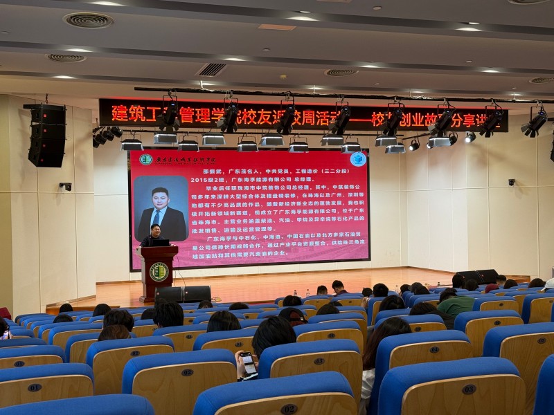 12月3日,建筑工程管理学院在凤湖苑218会议室举办校友返校周活动——校友创业故事分享讲座。讲座邀请了广东御车甲新材料有限公司总经理林楷锋(物业管理2011级)和广东海孚能源有限公司总经理邵振武(工程造价三二分段2015级)两位优秀校友返校分享。建筑工程管理学院党总支书记黄亮祥、副院长朱光金和教师代表及学生代表参加讲座。