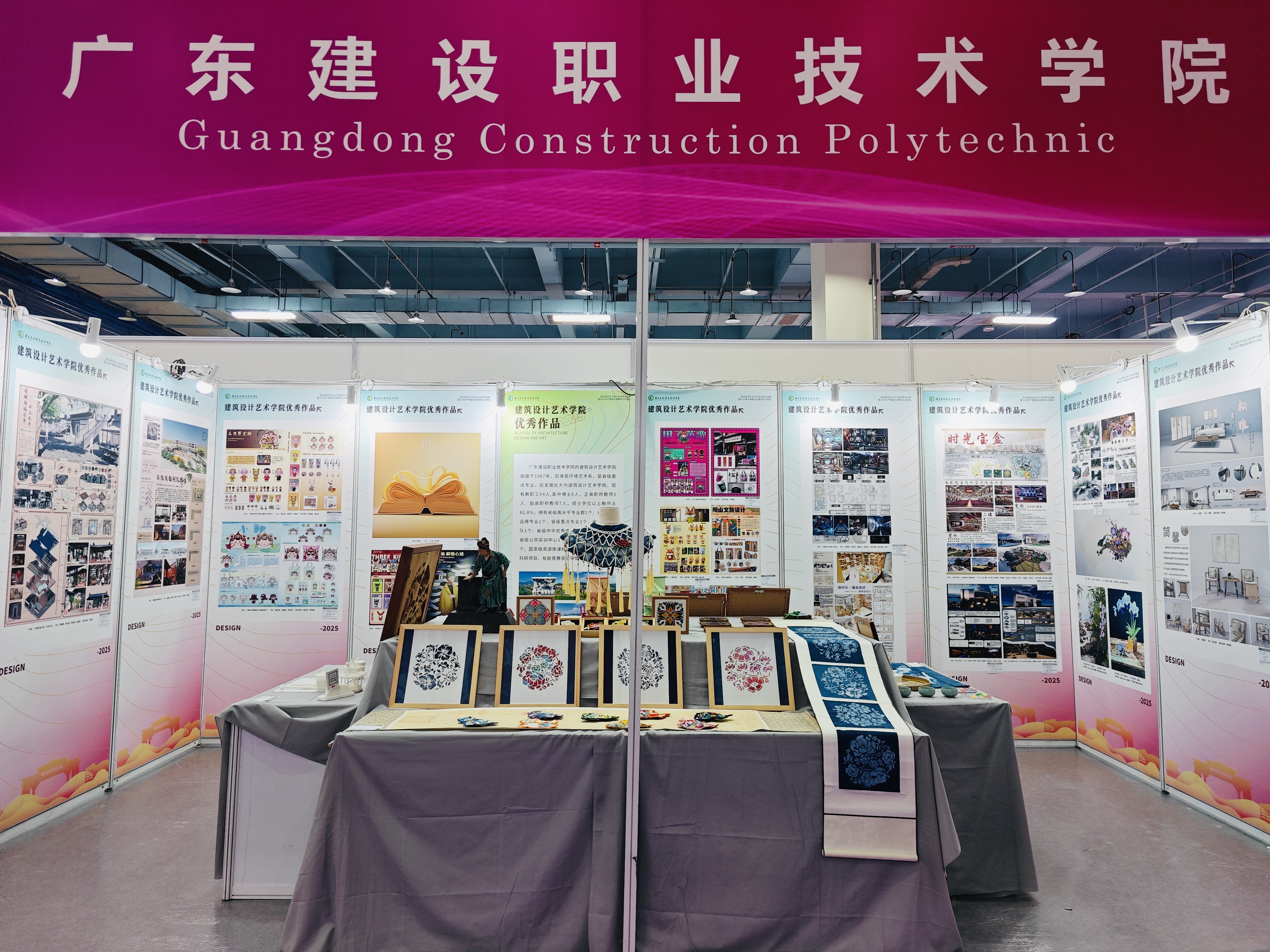 11月14日至16日,教育部职业院校艺术设计类优秀作品展暨2025年产教融合成果转化对接会在琶洲灵感创新展馆举行。我校建筑设计艺术学院由院长杜营、副院长盛玉雯带领师生团队参展。