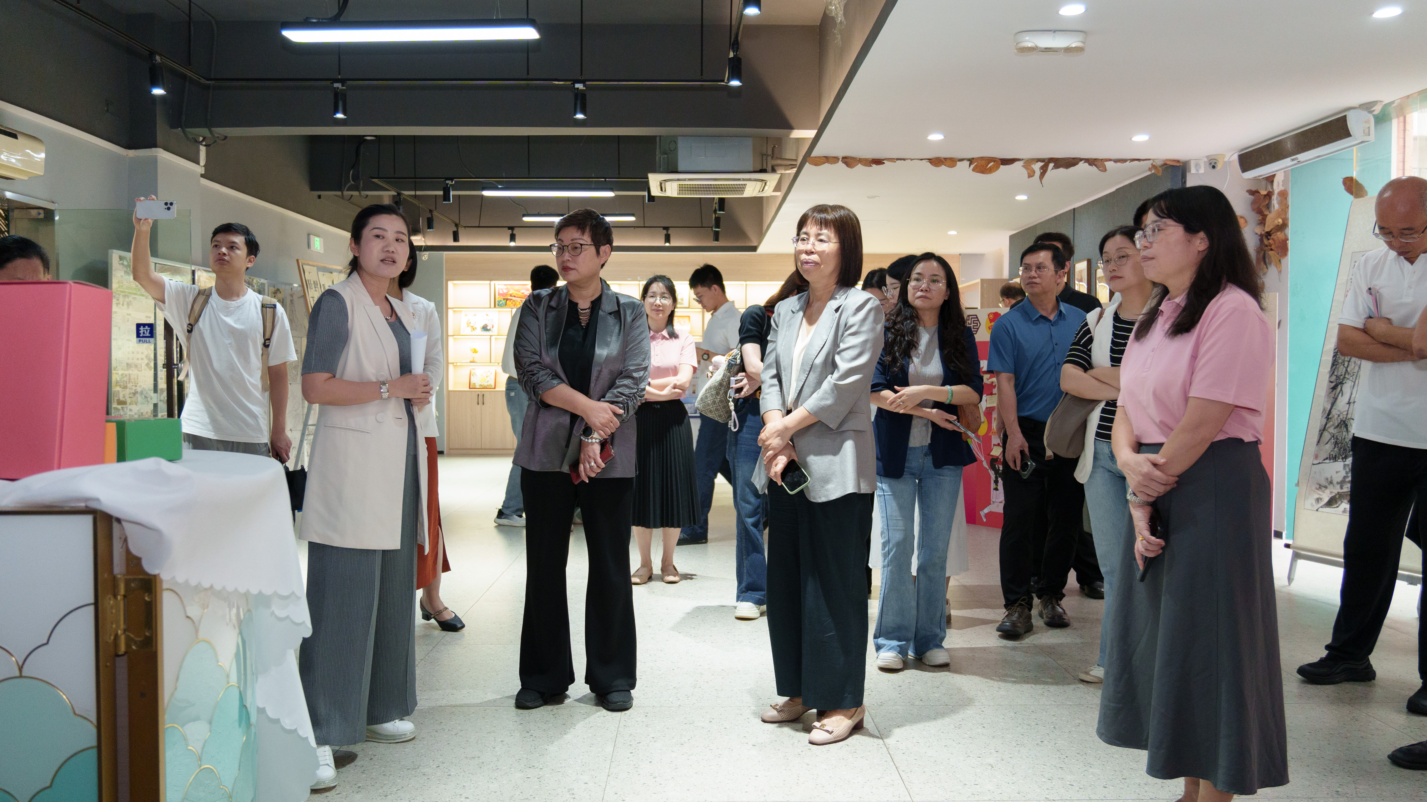 在建筑信息学院“德苑”学生社区,学院相关负责人现场演示了AI辅导员、数字人交互一体机等数智思政情况,并介绍了辅导员工作室、心理辅导站、党建文化长廊、劳动实践基地等场域建设的探索。在建筑设计艺术学院“艺美学堂”,学院负责人围绕“美中学,学中美”的理念,分享了美育浸润和名师工作室建设的做法,调研组还参观了学生制作的扎染、书画、压花等作品。