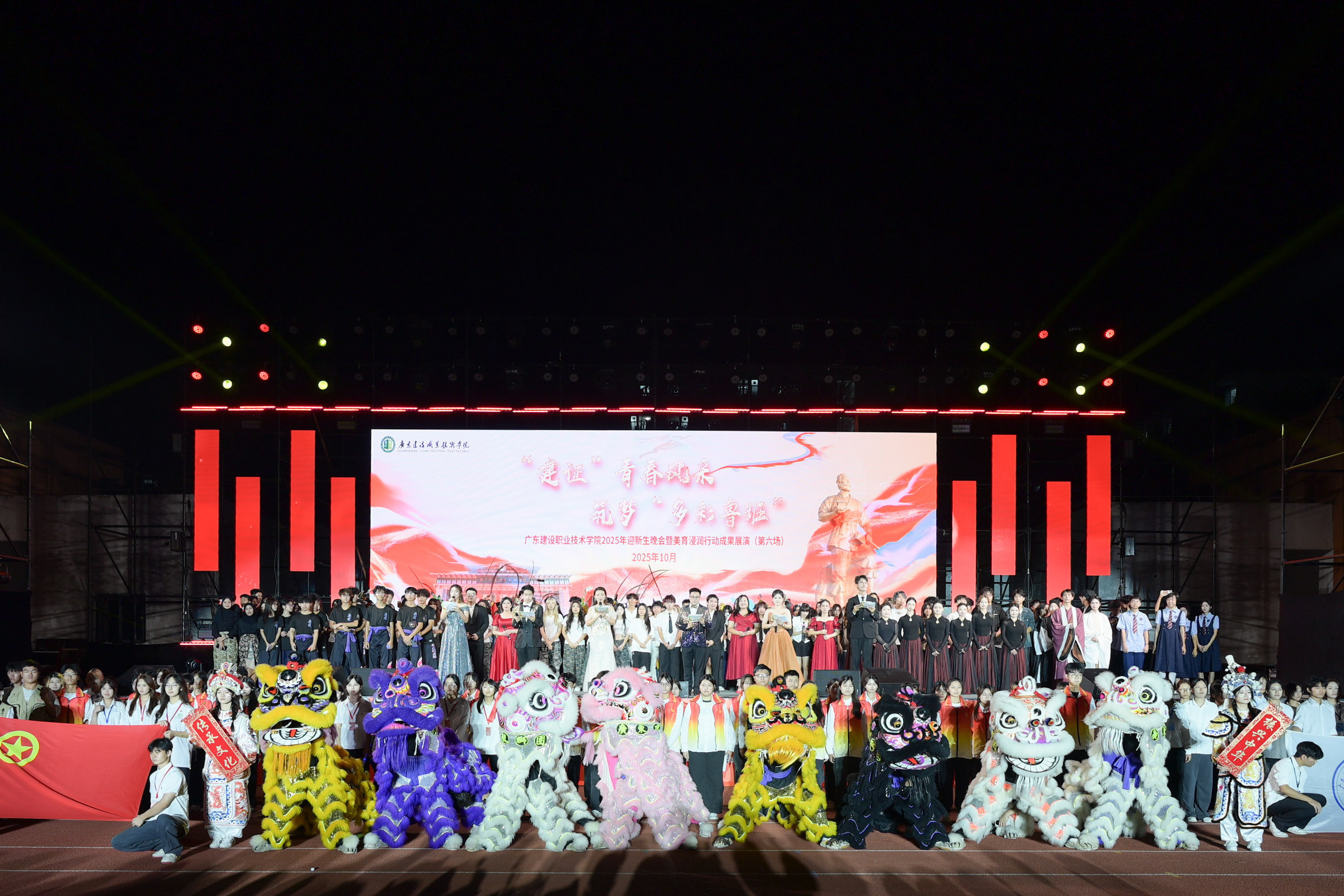 10 月 29 日,广东建设职业技术学院“建证青春风采,筑梦多彩鲁班”2025 年迎新生晚会暨美育浸润行动成果展演在清远校区举行。学校党委副书记方秀英,副校长刘光辉、许力,工会主席蔡东莅临晚会现场,全体中层干部、辅导员老师和 2025 级新生等近万人到现场观看演出。