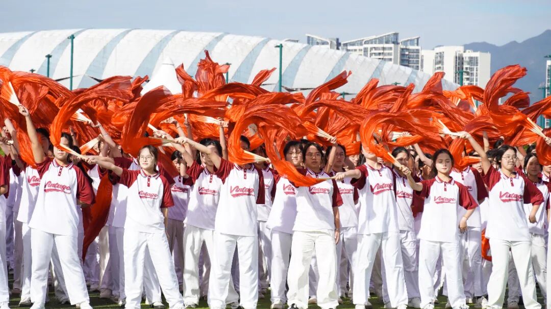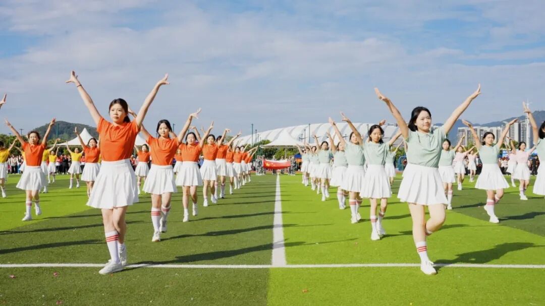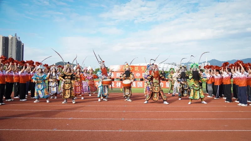 升旗仪式之后进行了“拼搏铸就辉煌,运动点亮梦想”文体表演,表演由公共课教学部与校团委共同打造,为现场师生带来一场视觉盛宴。《雄狮震岳·壮志启新程》由公共课教学部与校团委联合呈现,雄狮昂首,威震八方,以昂扬之姿点燃校运会激情。校团委组织250名学生带来了团体操《彩扇翩跹·赤忱绘新篇》,学子们把身躯化作律动的诗行,用赤诚之心谱写广建人的壮美华章。公共课教学部组织120名学生演绎的舞蹈《炫舞飞扬·激情耀赛场》,让青春的烈焰照亮校运会的每一个角落。全场掌声不断,气氛热烈。