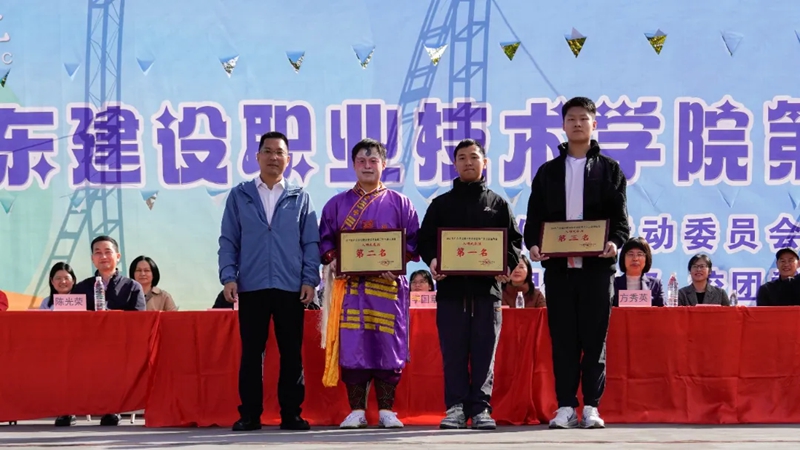 活动评选出建筑信息学院、建筑工程管理学院、低空数智学院为“校运会入场式表演奖”第一、二、三名。学校党委书记李国章为获奖代表颁奖。