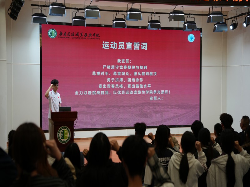 参赛运动员代表谭益和发言,表达了全体运动员团结协作、全力以赴为院争光的决心。最后,全体运动员集体宣誓。誓言铿锵有力,彰显拼搏决心。