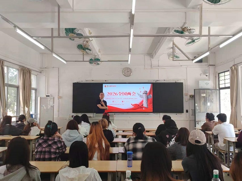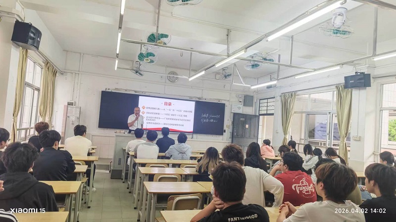 近日,经济贸易学院2026年春季学期“思政第一课”开讲。学院党总支书记马振华和院长罗涛,分别以《从五年规划读懂国家发展 在广东实践书写青春答卷》和《2026年两会精神解读》为主题,为学生带来了两场意义深刻的“思政第一课”。