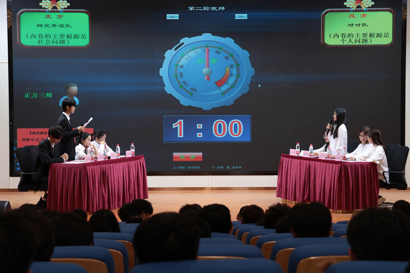 比赛伊始,张毅为活动致辞,对辩论赛的举办意义给予肯定,鼓励选手们以辩明思、以论践行,在交锋中展现青春风采。比赛正式开始后,正反双方选手依次登场进行自我介绍,简洁有力的表达迅速点燃现场氛围。