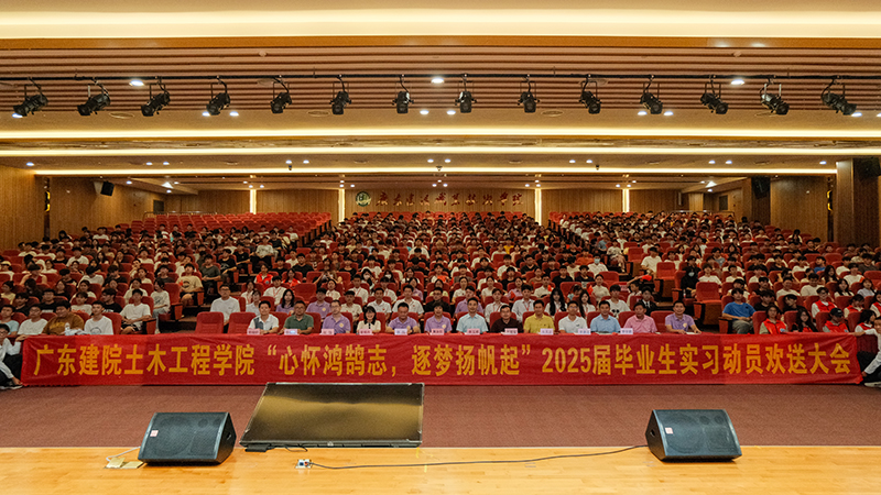7月1日晚,土木工程学院在清远校区学术报告厅举办以“心怀鸿鹄志 逐梦扬帆起”为主题的2025届毕业生实习动员欢送大会。党总支书记黄永红,院长李玉甫,教学工作负责人魏伟,教研室主任、班主任、辅导员、实习指导老师以及2025届学子等700余人出席。