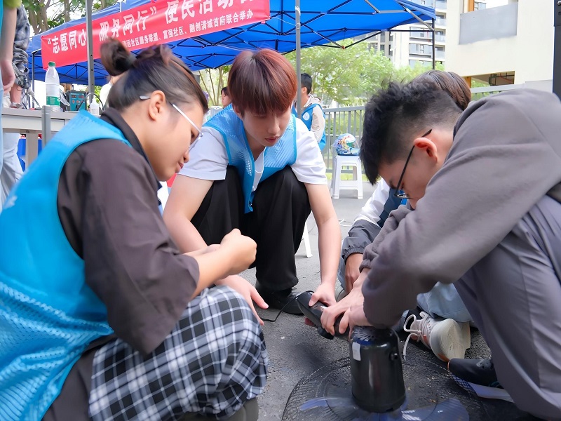 活动现场,八大民生志愿服务“摊位”有序排布,成为贴近居民的“便民服务集市”。我校电子科技协会学子与志愿者、行业专家并肩,在电器维修、电脑维护摊位前忙碌不已。面对居民送来的“罢工”风扇、电饭煲等家电,同学们凭借专业知识和实操技能,细致排查故障、熟练拆解调试,让一件件家电重获新生;针对电脑卡顿、系统故障等问题,耐心优化系统、清理垃圾、重装系统,切实解决居民困扰。大家分工协作、细致周到,用专业赢得居民一致好评。