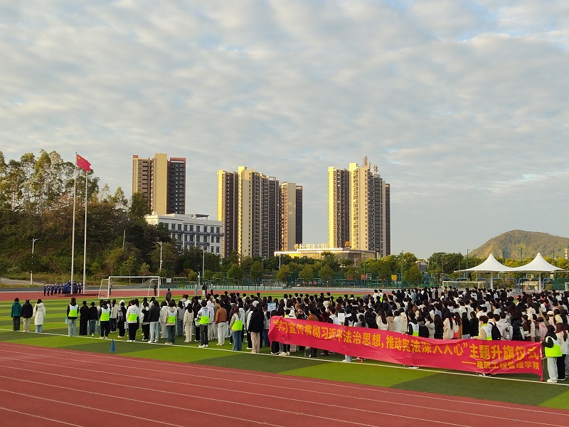 12月15日清晨,建筑工程管理学院举行“学习宣传贯彻习近平法治思想,推动宪法深入人心”主题升旗仪式。学院副院长朱光金、学生党支部书记、学工办主任吴秋霖、全体辅导员、班主任代表和24、25级全体师生参加。
