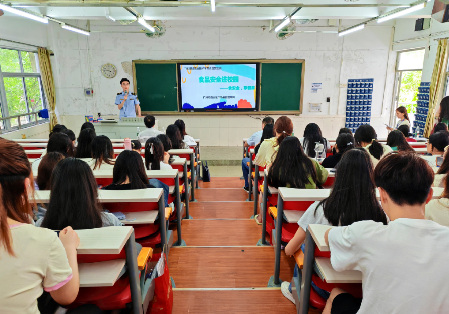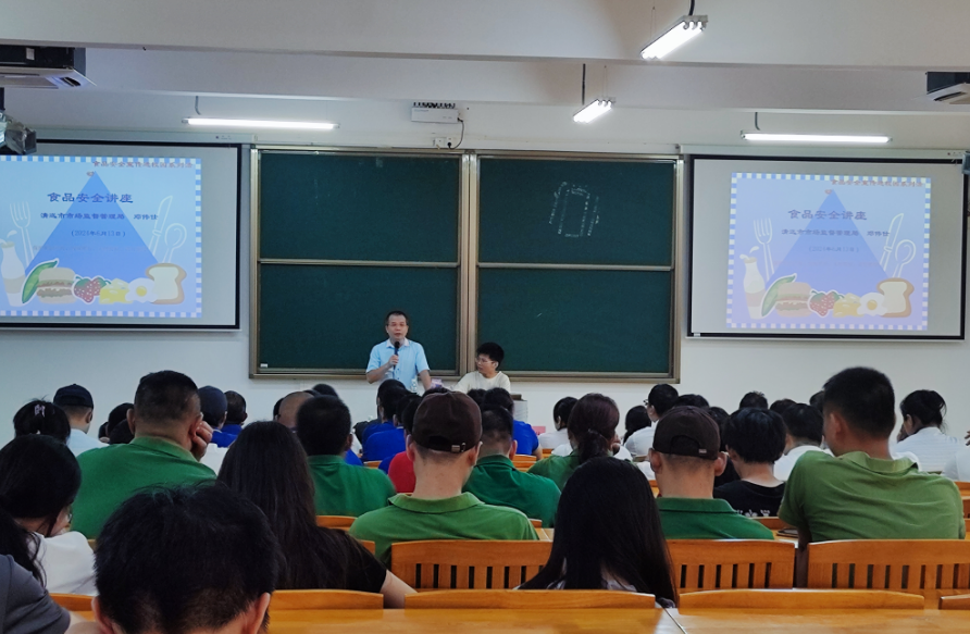 6月13—14日,在广州、清远校区组织开展食品安全宣传系列讲座,邀请业内专家广州健康城市促进会李霞莲、清远市场监督管理局邓伟士分别做了题为《大学生饮食营养与健康》《大学生健康饮食健康》的辅导报告,向师生介绍路边摊档及外卖存在的食品安全隐患,以及如何从营养学的角度选择健康食品等知识,广州市白云区市场监督管理局餐饮科谭娇敏副科长、广州市白云区市场监督管理局均和所黄志成副所长参与活动并讲话。