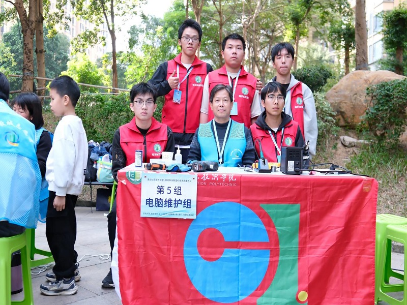 12月6日,清远社区服务联盟携手11所中高职院校师生及社会各界能工巧匠,走进清城区五洲世纪城小区,一场以“劳动光荣、技能宝贵、善心善行”为主题的志愿服务活动温暖启幕。我校电子科技协会社团指导老师刘勇带领5名社团成员积极投身其中,以扎实的专业技术为社区居民排忧解难,在劳动实践中彰显广东建院学子的责任与担当。