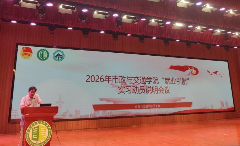 4月27日,市政与交通学院召开2026年“就业引航”实习动员说明会。学院院长曾跃飞、副院长朱志刚、顶岗实习指导老师吴子超、2024级辅导员、班主任,以及550余名2024级学生参加会议,共同吹响实习“出征号角”。